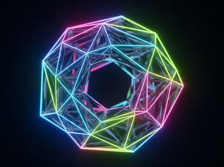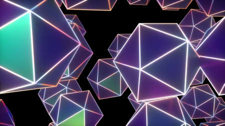 3d render, abstract geometric background, polygonal wireframe, neon lights