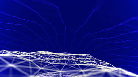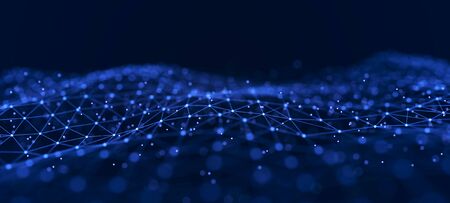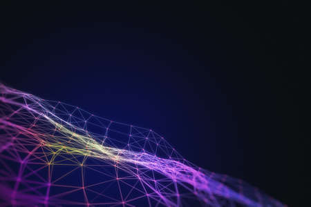 Futuristic glow wave. The concept of big data. network connection. Cybernetics. Abstract dark background of lines and triangles connected by dots. 3d rendering.
