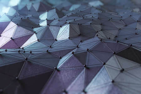 Low poly glass surface. Abstract background. Modern polygonal shape. 3D rendering with DOF
