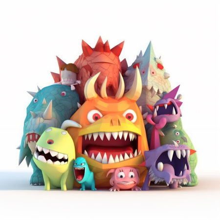 A group of colorful and playful cartoon monsters standing side by side, displaying various shapes, sizes, and expressions, creating a whimsical and imaginative scene.