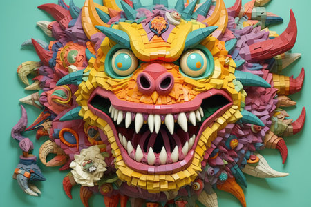 A close up of a dragon made out of paper, AI