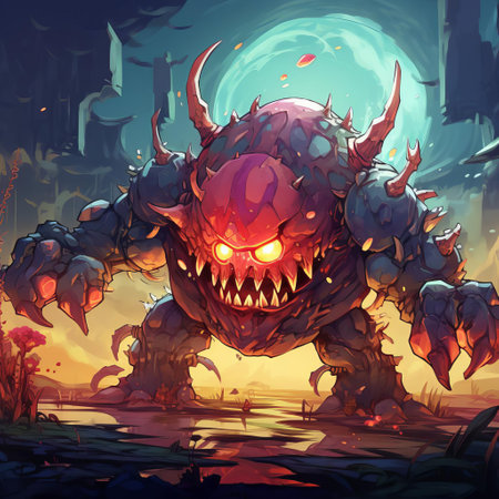 A vibrant, cartoonish portrayal of a monstrous microbe, emphasizing its grotesque features.