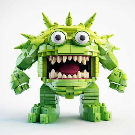 the lego monster, standing proudly on a pristine white background, showcases its intricately designed full body, complete with vibrant colors and textures, making it a stunning visual treat for fans of 3d art, lego enthusiasts, and anyone who loves fantasy creatures and creative designs. ai generated