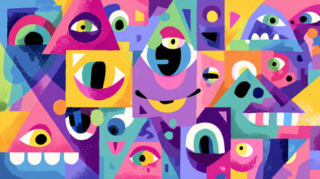 A playful and vibrant cartoon illustration featuring bold colors, abstract shapes, and a cheerful, colorful layout. This eye-catching design is ideal for promotional content, advertisements, posters, flyers, and social media campaigns.