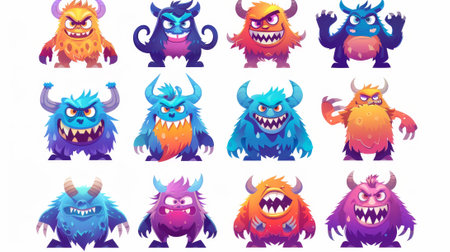 Colorful and friendly cute monsters with varied textures shouting joyfully together