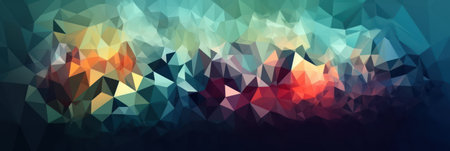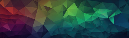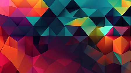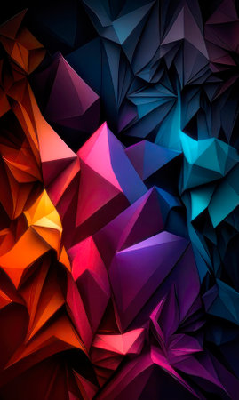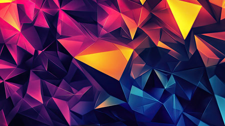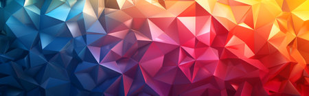 Vibrant geometric low poly pattern presenting dynamic abstract shapes with bright spectrum colors, forming eye catching textural background for modern graphic design