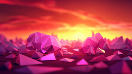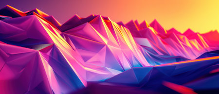 A captivating abstract landscape featuring geometric triangular shapes in a vibrant gradient, perfect for creative projects seeking an artistic and dreamy ambiance.