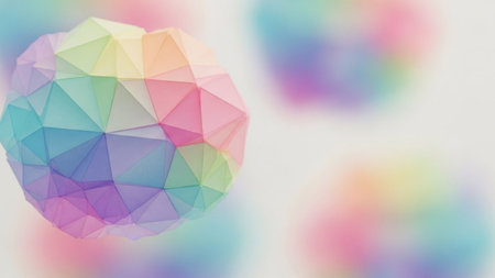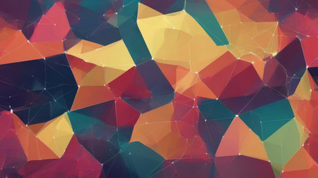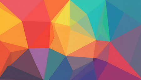 Vibrant abstract geometric pattern with colorful polygons, blending bright hues and shapes, with ample copy space for text or logos.
