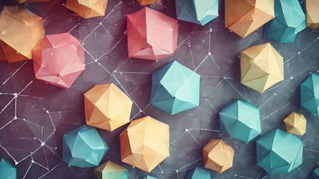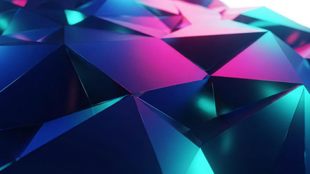 Geometric polygonal vector pattern with sharp angles and vibrant colors on minimal background, perfect for abstract tech design