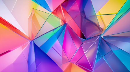 Vibrant abstract geometric background with colorful polygon shapes and smooth gradients. Modern design ideal for banners, posters, wallpapers and digital projects.