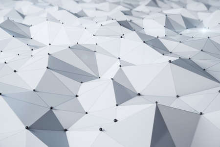 White polygonal space background with connected nodes and lines. Connection low poly structure. Science or futuristic technology background. 3D rendering illustration