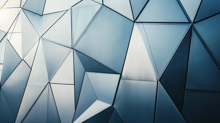 This abstract image features a modern geometric wall made of triangular panels. The sleek blue tones and reflective surfaces create a visually striking design perfect for various creative projects.