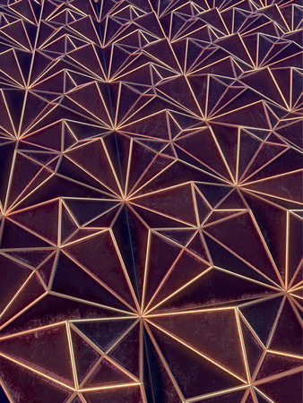A metal wall made of many triangles. Triangles with sharp corners and gradient transitions.