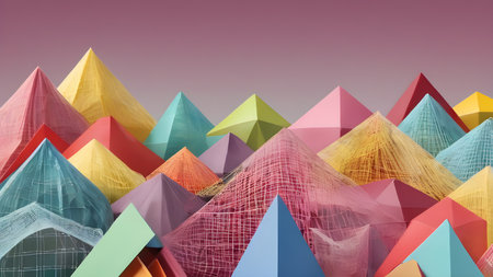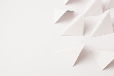 White background with 3d triangle shapes, close up