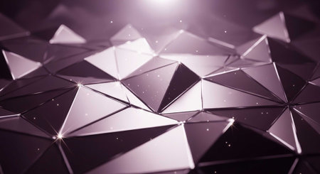 A stunning purple geometric pattern with triangular shapes and sparkling lights