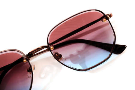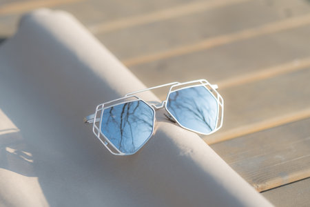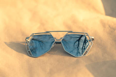 Sunglasses aviator design with big lenses shoot outside in a summer day closeup . Selective focus