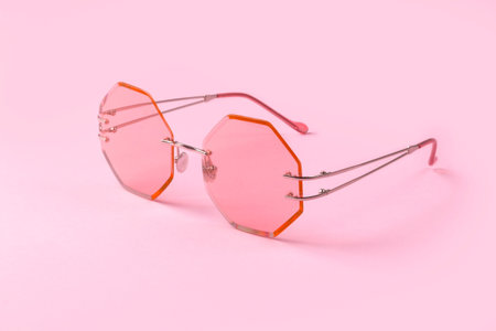 Creative pink trendy sunglasses on pastel background. Minimal summer concept.