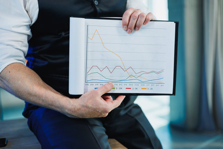 Detailed shot of a financial graph with fluctuating stock prices, highlighting various data points and trend lines in a professional setting.