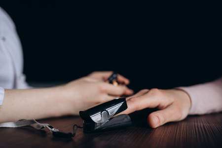 Pulse measurement on the finger lifestyle. An article about medical devices. Pulse measurement at home. Measurement of air saturation in the blood. Saturation check. medicine and health