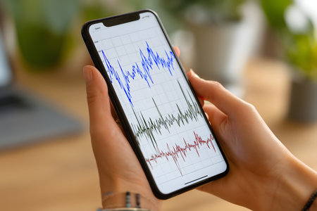 A close-up view of a heart rate monitor display on a tablet screen, showcasing waveform data. The image highlights modern technology in health analysis and monitoring.
