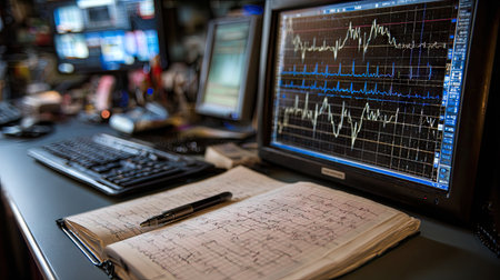 lcd monitor with a line graph, Generative AI Art Illustration