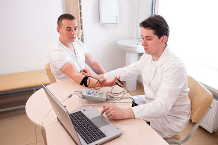 Patient nerves testing using electromyography. Medical examination. EMG