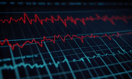 Red seismic waves pulsating on a dark monitoring screen indicate ongoing earthquake activity, providing crucial real time data for geologists and researchers