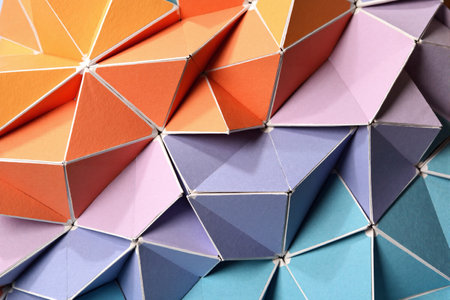 Triangular tile tessellation in vibrant geometric and abstract design with sharp angles