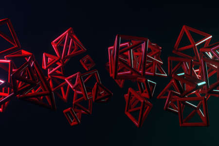 Concepture geometric, bunch of triangle or square flying, inter-locked, for design texture or title background. 3D render.