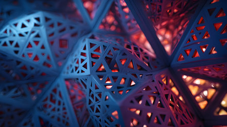 Explore a captivating arrangement of geometric shapes illuminated by vibrant neon lights. A modern and artistic composition that sparks creativity and imagination.
