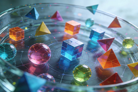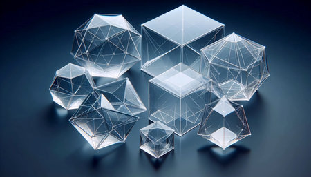 Platonic solids in transparent forms, Ai generated image