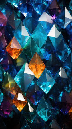background with a diamond pattern, a kaleidoscope of colors dancing under diffused light. Glass glamour.