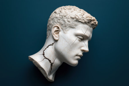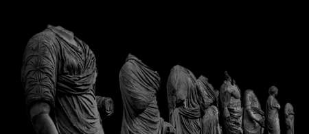 A monochrome image of a classical bust Marble statue with a stylized dark aesthetic.