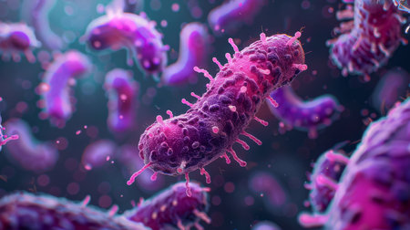 An intricate digital representation of bacteria displaying vibrant colors and glowing elements, highlighting the fascinating world of microscopic life in a stunning abstract setting.