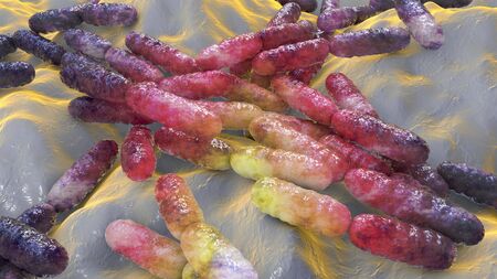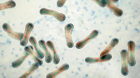 Scientific image of bacteria Corynebacterium showing their characteristic morphology, rod-shaped bacteria with wider ends and club shape appearance, 3D illustration. C. diphtheriae and other