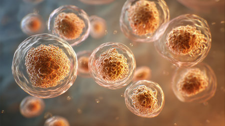 Detailed macro image reveals various stages of microscopic embryo development, Ai Generated.
