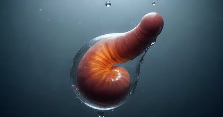 An earthworm floats gracefully underwater, captured in a serene moment with water droplets surrounding its elongated body. AI generation