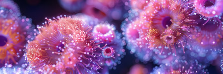 Wonderful aquatic life in ocean seabed. anemones. Coral reef design. Generative AI. Illustration for banner, poster, cover, brochure or presentation.