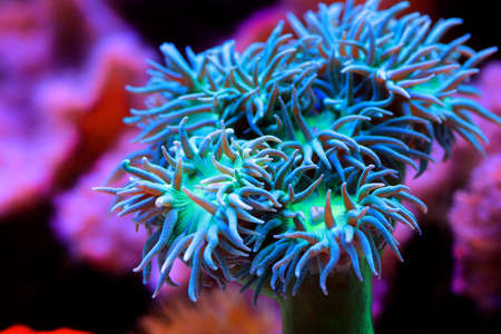 A close-up of a coral in an aquarium, saltwater aquarium.