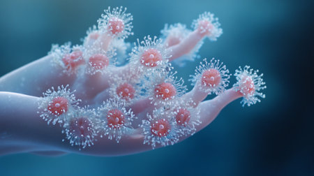 3d rendering of a virus in a human body. Bacteria