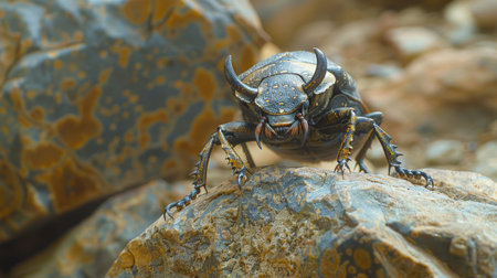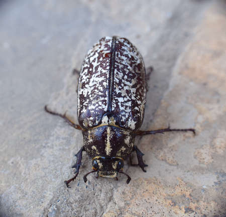 Beetle on a rock in the wild. Wildlife scene from nature.