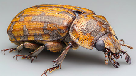 A close-up image of a beetle with intricate patterns.