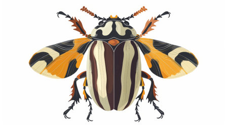 Fantasy beetle. Top view of a bug with legs. A bug with stripes on its wings, a small animal from above. Flat modern illustration isolated on white background..
