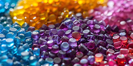 close up of different colored plastic granulates