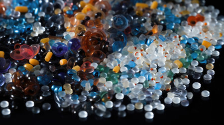 close-up of microplastic pellets, illustrating their small size, created with generative ai