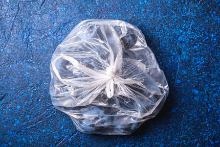 plastic bag on a dark blue background. The concept of ecology.
