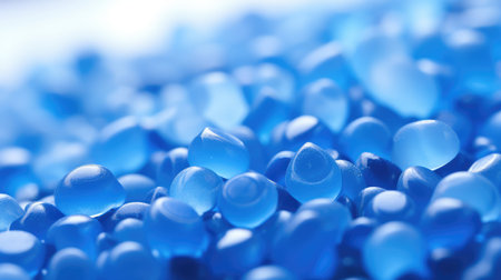 Photo Of Close Up Flat Lay Of A Blue Plastic Polypropylene Granules On A Table. Generative AI