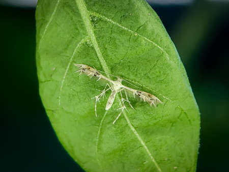 Pterophoridae on a leaf. The Pterophoridae or plume moths are a family of Lepidoptera with unusually modified wings.Â