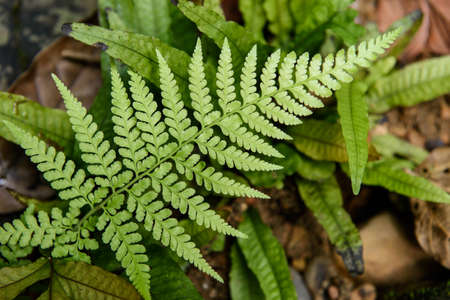 Close-Up Of Dark green leaves Fern in the Asian forest background
