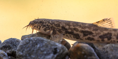 small catfish in aquarium water close up